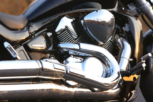 The Intruder has 18-inch rims, with tyres as thick as 240/40 section at the rear. Under-over silencers snake out from the large, four-stroke, 1783cc power plant to add heaps of personality to the motorcycle. The Intruder’s engine bay is totally filled up by its colossal V-twin and liquid cooling system. With a climax power figure of 125bhp at 6200rpm, this big Suzuki excels in delivering all 16.3kgm of torque as low in the power band as 3200rpm. A blip of the Intruder’s throttle is akin to emptying a double-barrel shotgun. It’s the best part of this motorcycle, and the gruff roar of the Intruder’s exhaust rips through the air with magnificent effect. Its engine sounds and pulls with a thump similar to a big single at top speed, and a short stroke (90.5mm) dimension guarantees the revs rise with an enthusiasm contrasting most cruisers with their long-stroke nature.
