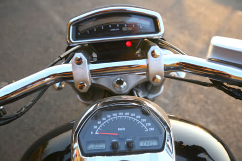 Ride quality is more taut than soft with straight line steadiness a strong point, thanks to the 1710mm wheelbase. But cornering is a task and the low-slung Intruder grazes its pegs just about too easily, before being pushed down into a bend. But being a cruiser bike, it’s made to cover long distances in style and in a stress-free way.