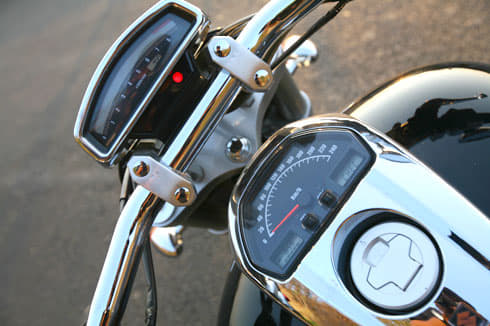 This gigantic motorcycle certainly has an authoritative presence. It comes with great, low-set headlights that grin under a chrome hat-like mantle and remains on at all times. Traditional turn indicators stick out front and rear, while a digital bar-type rev counter setup on tall stalks looks directly into a rider’s field of vision. A astonishing fact is that other basic instruments including the speedometer sit far below, across the bike’s fat tank, which means the rider’s eyes have to leave the road to take a look at them.