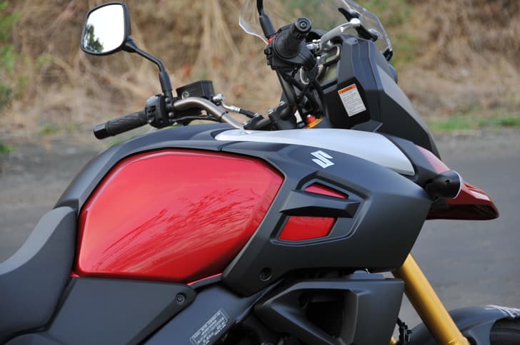 The V-Strom’s high handlebar comes with good quality switchgear that includes traction control level selection and a high beam switch. Palm grips are premium, as are a set of top drawer, reach adjustable clutch and brake levers. The broad mirrors have a solid, sturdy feel to them and provide good visibility, although they do look a bit dated.