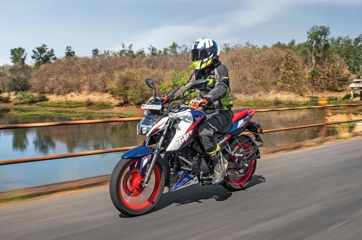 The RTR 160’s engine isknown for legendary refinement levels, and this 165cc motor is quite smooth in its own right, remaining largely vibration-free through most of the rev range.
