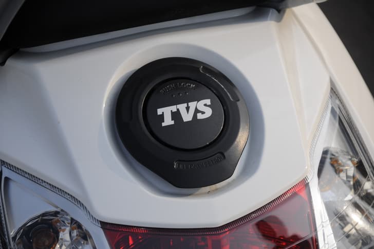 TVS’s Jupiter is a smart urban automatic scooter with sharp styling. The new scooter shows off angular body panels, its front apron encasing the turn indicators along with an air vent. The Jupiter headlight is equipped with pilot lamps, while its bold analogue instruments bay comprises of a speedometer, fuel-gauge and economy/ power riding mode indicator. As expected, switchgear is top-quality, and includes a handy pass-light flasher that is cleverly integrated with the high and low beam switch. The Jupiter’s palm grips feel soft and comfy, and there’s a rear brake-locking clamp. The Jupiter offers convenience hooks under the handlebar and rider seat, these tucking away with a neat flush fit withing the scooter body when not used. Contrary to most scooters, the Jupiter locates its fuel-filler lid at the back of the scooter, just above the tail-light for convenient tank ups. The Jupiter tail looks stylish, and comprises sharply styled clear lens indicators on either sides of its main brake warning light. Neatly executed 5-spoke alloys wheels are finished in black, blending well with the scooter’s overall design philosophy, which is simple, yet neatly finished with a modern touch. Attention to detail is really good on the new TVS scooter.