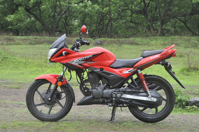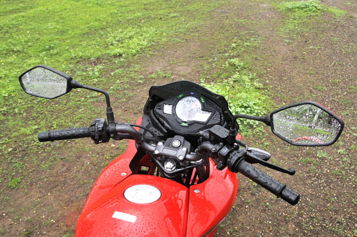 The digital instruments boast an amber backlit digital display, with prominent speedometer, a fuel-gauge, low battery reminder, trip-meter and service-due reminder all tucked under a wind deflector. TVS’s latest motorcycle uses really top notch grips, good switchgear and nice control levers. Its mirrors function well. Hazard warning is provided on the Phoenix, marking a first for this class of motorcycle.