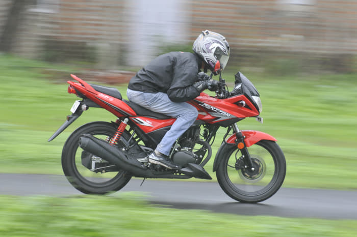 The riding position is good for a commuter bike, upright, astride a long seat, and handling feels par for a 125, light with neutral steering. Cornering manners are good, while the Phoenix provides fair ride quality. Braking is via a 240mm, petal type single disc brake in front, and 130mm drum brake at rear. The Phoenix stops with confidence, holding its line well even under hard braking, and never compromising stability. The Phoenix offers a 90/90 x 17 inch rear tyre, wide for its class, and grip levels proved adequate for a 125cc commuter bike.