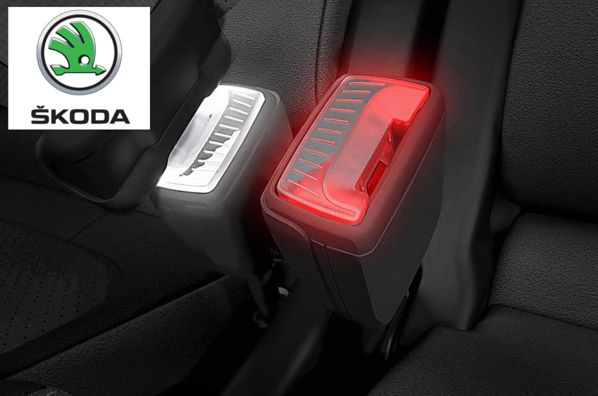 Skoda has patented a new LED seatbelt buckle that will not only reduce the hassle of trying to put on seatbelts at night but also as an indicator to wear your seatbelt.The tech features a pair of multicoloured LED lights under the transparent eject button that illuminate in three colours – white, red and green, subject to the seat being occupied and the occupant wearing the seatbelt.