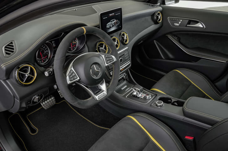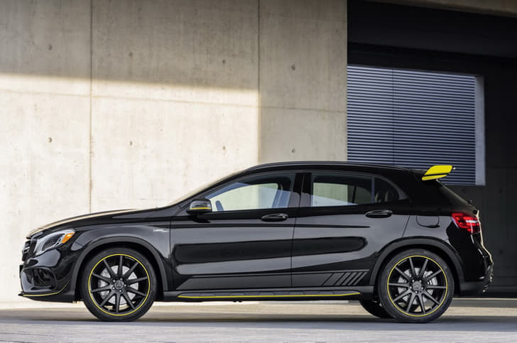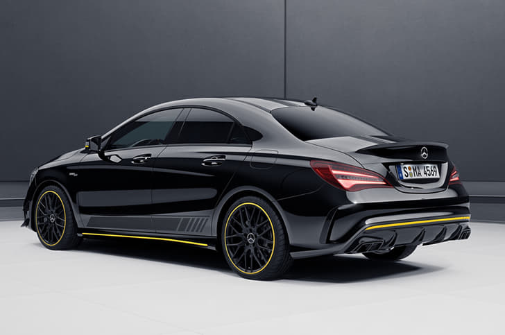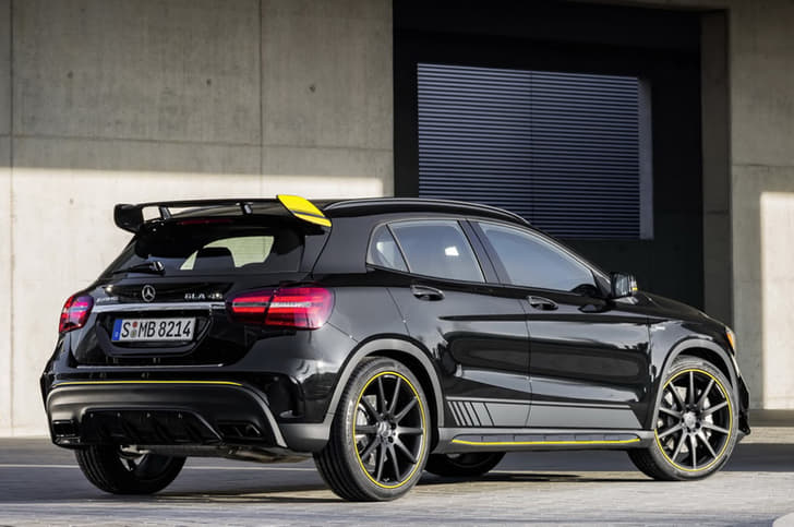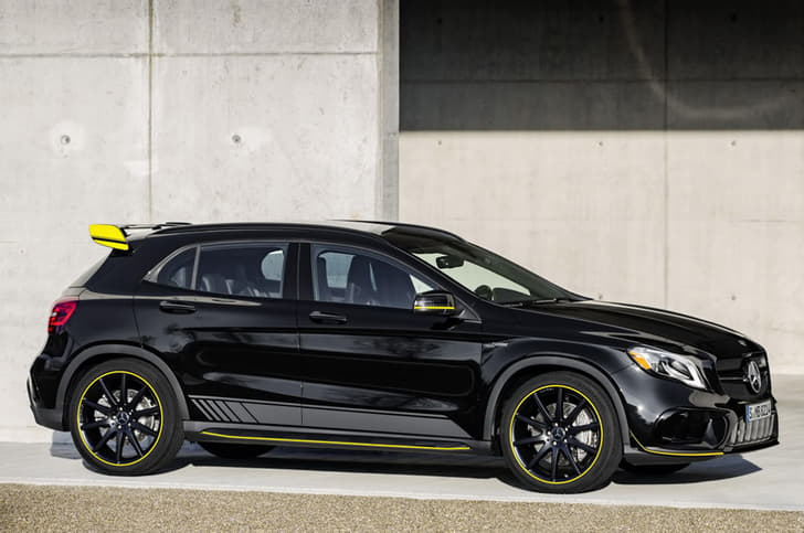 The performance-oriented four-door coupe and SUV will be available in a new black finish and feature some external changes, including decals on the doors and a sporty yellow strip running on the front and rear bumpers, the sides, on the outside rear view mirrors and the blacked-out alloy wheels. The GLA also gets a boot-mounted spoiler with yellow touches, further accentuating the sporty theme.