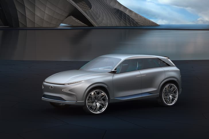 The concept uses Hyundai’s new fourth-generation hydrogen fuel-cell technology, which the company claims is 20 percent lighter and 10 percent more efficient than the system currently uses in the ix35 Fuel Cell. The power density is also 30 percent higher than that of the ix35’s, giving the concept a range of 800km.