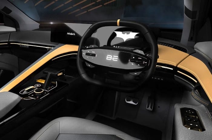Inside, the cabin adopts an all-black theme with gold accents, including black suede leather upholstery with gold stitching and Bat emblems. A numbered plaque on the centre console highlights the limited-edition nature of the model.