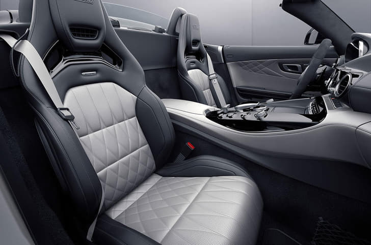 The interior features a combination of black and silver leather for the seats and centre console together with touches from AMG’s existing Interior Night Package, with the steering wheel spokes, shift paddles and door sill panels in black. The contrasting colour theme is continued with silver seat belts and black chrome trim elements. The head rests are also embossed with the words “GT Edition 50”.