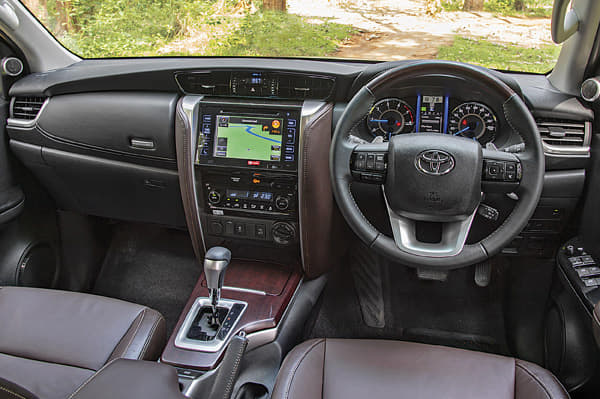 The Endeavour is, in comparison, not as outlandish, but that’s not to say it isn’t imposing. It just goes about scaring you out of its way in a more traditional way – with chunky, squared-off proportions. The huge, bluff chrome grille is almost at chest height, and the small headlamps make it look larger still. At the front and rear are matte silver bumper inserts that add a lot of character, while the hugely bulged wheel arches just add to the muscle. At the back, there’s an even bigger chrome strip that cuts into the tail-lamps really neatly. Look closer and you’ll see smaller lines and details in the metalwork that you might not at first. Overall, the Endeavour is a more mature design that hits you with its huge size and chunky shape, while the Fortuner is all about grabbing eyeballs with its striking details and lots of chrome wherever possible. What matters is that both appeal strongly to the Indian buyer.