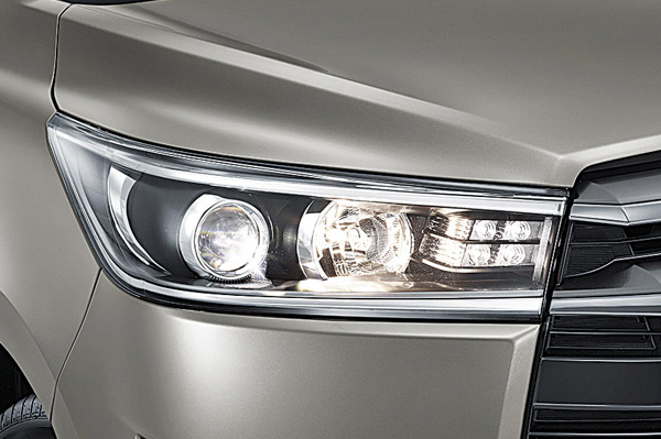 Up front, the nose borrows styling cues from more recent models like the Corolla Altis and Camry. The big hexagonal grille is wider and taller, and extends all the way to the base of the nose. The headlamps are double-barrel projector units with integrated LED daytime-running lamps.