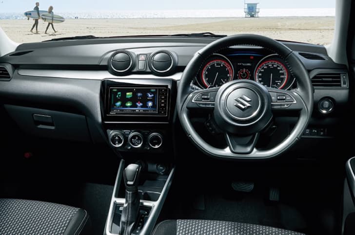 Compared to the outgoing Japan-spec Swift, the interiors of the newer model aren’t all that different to look at. However, look close and there are minor differences in the dashboard design and trim, and Suzuki offers new seat fabrics, upholstery and headliners too. There’s a bit more equipment on offer as well, at least on the higher-spec versions, which now get paddleshifters and a 360-degree camera as standard.