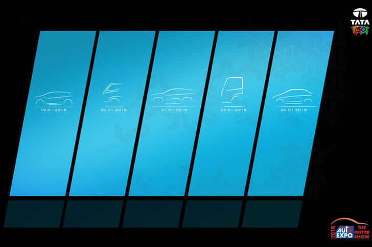A new teaser image from Tata Motors shows the silhouette of the five new models that will be brought to the 2018 Auto Expo. The image comes after the release of a video invite which showed three models under wraps. According to a tweet put out by Tata, additional information for each of the new models will be revealed before the end of the month.