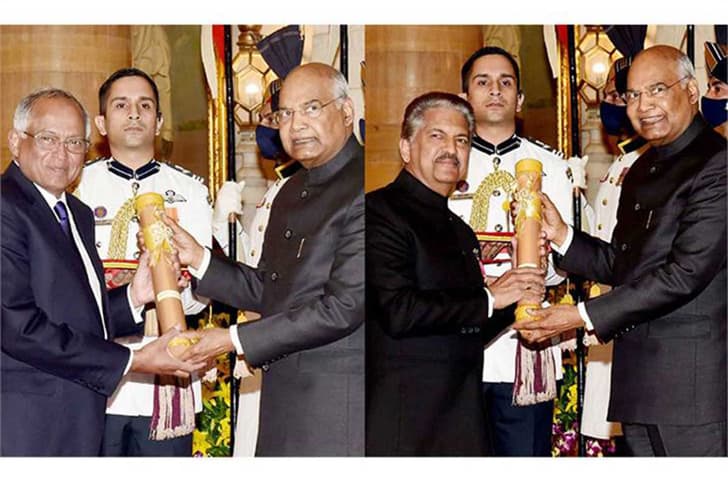 India Auto Inc’s Venu Srinivasan, TVS Motor Co’s chairman, and Anand Mahindra, chairman of Mahindra Group, have been conferred the prestigious Padma Bhushan for their distinguished services in the field of trade and industry. On November 8, President Ram Nath Kovind presented three Padma Vibhushan, eight Padma Bhushan and 61 Padma Shri Awards for the year 2020 at the Rashtrapati Bhavan.
