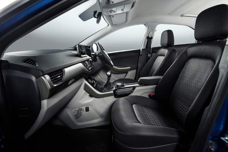 On the inside, Maruti has attempted to fuse contemporary design with convenience. The rear seats feature a 60:40 split ratio, and fold flat down to enlarge boot space. The large centre console features a touchscreen infotainment system with Apple CarPlay with Android connectivity is in the pipelines. All the switches are carried over from the Swift due to their functional and neat character. The Vitara Brezza also features a double cooled glovebox.