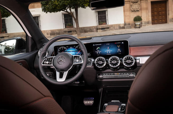 Inside matters improve markedly, the GLB getting the same slickly laid out wall-to-wall TFT infotainment and instrument cluster that debuted in the A-class a year or so back. That means it features the MBUX operating system that adds the handy ‘Hey Mercedes’ voice control, while new to the GLB is the ability to use the system to pay directly for parking or download extra features, such as Apple CarPlay.