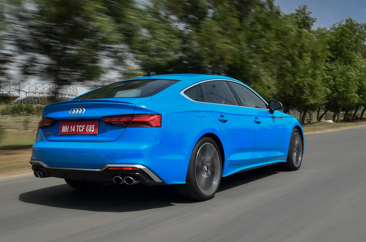Furthering this sporty cause are the aggressive-looking set of five-spoke, 19-inch alloys, a size up on the 18-inchers of before, which fill out the wheel arches nicely, and the S models’ trademark silver wing mirrors and quad tailpipes. Moreover, since this is a CBU import, the ride height hasn’t been raised for India, and what you get is a nice wide stance (the S5’s shape was always inherently muscular) but still enough ground clearance for our roads.