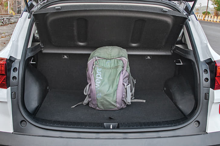Rear-seat occupants will find legroom to be decent, with the bench being quite comfy for a car this size. Of course, it doesn’t have the same amount of space as the Harrier or the Hector, and the seats could do with a bit more underthigh support. However, the almost flat floor, and a reasonably wide seat mean a third passenger won’t feel unwelcome here. What’s nice is that the backrest also reclines to a very comfy angle (up to six degrees), although the controls for it are inconveniently positioned on top of the backrest, rather than beside the seat. The large window area and the rear quarter gives the cabin an airy feel, and sliding back the sunroof (only available on the GTX+ and HTX+ trims) further brightens up the space. At 433 litres, the Seltos’ boot is very usable. It is wide and has a flat loading lip, making it easy to load heavier cargo.