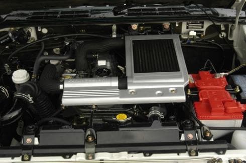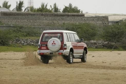 The Pajero is powered by an indirect-injection 2.8-litre turbo-diesel making a mere 117bhp and 30kgm. Refinement at idle is pretty good and motor is very smooth when cruising, except that it gets a bit boomy. The longitudinally mounted four cylinder engine disguises its relative lack of power and torque quite well by being very short geared. The Pajero scoots forward on a tap of the throttle, however its short gearing in favour of driveability makes it run out of steam pretty fast.