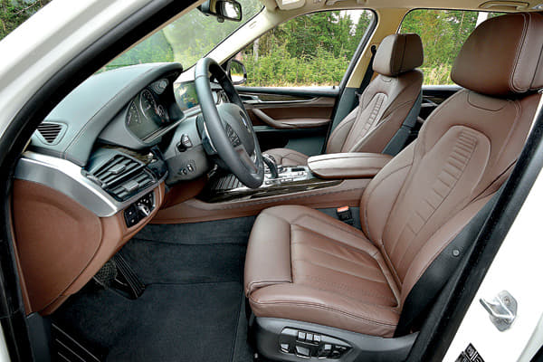 The 30d is the X5 that will account for over 90 percent of sales in India. It’s incredibly responsive and pulls cleanly from as low as 1700rpm. Though it doesn’t have the explosive performance of the petrol, this diesel has serious punch and pulls like a freight train with one seamless slug of torque. It’s a pity then that this engine isn’t as refined as it should be. There’s a noticeable drone from under the hood, which only disappears when you’re cruising at modest speeds. Again, the eight-speed gearbox works intuitively, smoothly ironing out any bumps in power delivery.