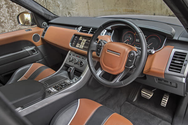 The interior doesn’t disappoint either, what with its good spread of colours and materials. We like the front seats, which appear to be the same wing-backed buckets you find in an F-type, and the rear seats are even individually shaped to mimic the ones at the front. There is some carbon-fibre trim on the dash and the dials are all digital, like in the full-size Range Rover, but that aside, it’s no different from the run-of-the-mill Range Rover Sport. We would have liked a bit more unique trim and definitely a sportier steering wheel.
