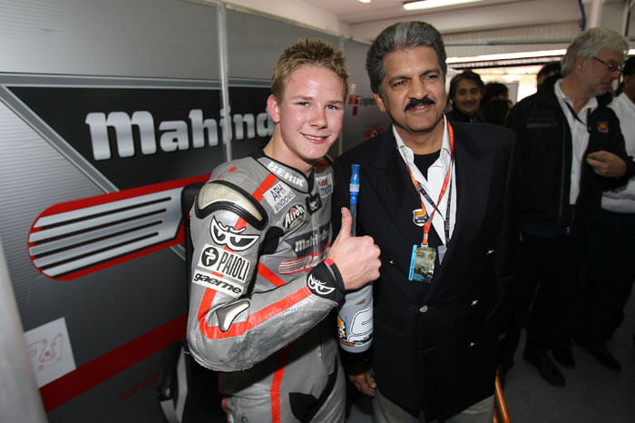 Mahindra Group’s vice chairman and managing director Mr Anand Mahindra got a chance to witness his team’s historic moment shortly after he unveiled the 2012 Mahindra MG30 Moto 3 Machine. “This is my first grand prix, and as soon as I come we get our first pole position, I think I am going to have to change my schedule for next year!” he exclaimed.