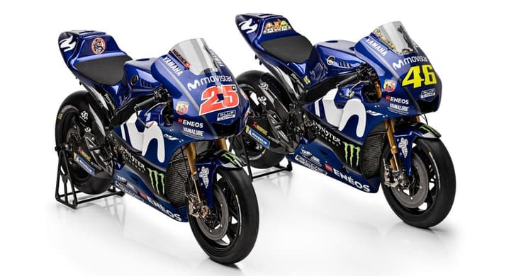 Yamaha has unveiled its YZR-M1 bike for the upcoming 2018 MotoGP season. The bike sports a familiar blue paint scheme with prominent branding – now white, as opposed to green – from title sponsor, Movistar.