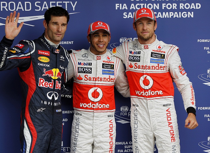 Meanwhile his Red Bull team-mate Mark Webber briefly deposed the McLarens at the head of the order, before Hamilton and Button's final laps thrust them back to the top, 0.055 seconds apart. Behind the McLarens and Red Bulls, Felipe Massa outqualified Alonso for the second time in a week as he claimed fifth.
