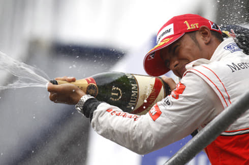 Hamilton grabbed the lead at the start of the race when polesitter Webber bogged down on the line and dropped to sixth as his Red Bull's anti-stall mechanism kicked in. The British driver was never challenged at the front - despite a brief burst of rain that caused him to run off the track at the Bus Stop chicane on the opening lap.