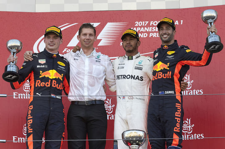That allowed Verstappen to close to within a second at the start of the final lap, but more traffic allowed Hamilton to escape once more and seal the win by a slight margin. Ricciardo completed the podium in third after a succession of fastest laps late on but couldn't make further inroads after switching to supersoft tyres on lap 25.