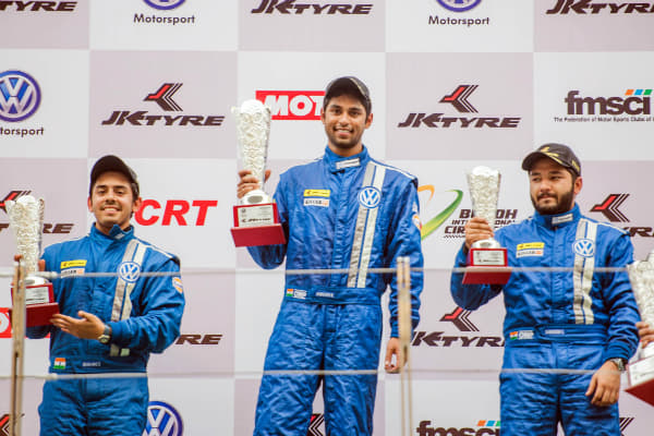 Race 2 of round 3 was a one-man show by Karminder Singh. Right from the start, Karminder in his number 23, and the latest podium entrant, Prabhanj Paruchuri, in car number 15, pulled ahead of the crowd. Sahil Gahuri, having started the race at number 1, despite a reverse grid start, couldn’t maintain his lead even for the very first lap, and by lap 3, was nine cars behind. Car number 5, driven by Chewang Lama, pulled into the pits in lap 3 due to ABS failure, and withdrew from the race. In lap 4 and 5, Ishan Dodhiwala at position 3, was hot behind number Paruchuri, before Dhodhiwala grabbed number two before start of lap 6. From thereon, the rankings saw almost no changes, and only widening of gaps between positions. The top three contenders kept pulling away from the remaining cars with a gap of over 3 seconds. The tail section too kept lagging behind, with a gap of 11 seconds between Sahil Gahuri at position 9 and Harikrishnan Wadia. Raghav Sharma, number 3 in the qualifiers, had a bad run, not completing the race due to technical difficulties after a crash with Rajeev Shrivastava early on in the race.