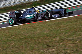 Further up the road, Hamilton began to suffer extreme tyre wear in his second stint and tumbled away from Grosjean towards Rosberg - only for the German's front wing to partially fail in a shower of sparks as he overtook his struggling team-mate.