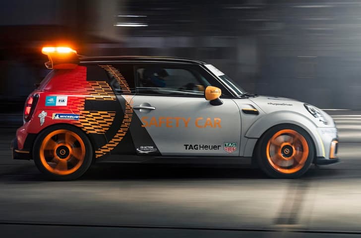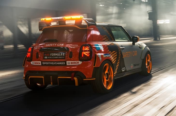 Mini has revealed the one-off Electric Pacesetter, which will serve as the official Formula E Safety Car, at select rounds this season, alongside the BMW i Roadster. The brand says the model connects its “electrified future with the rich racing history of John Cooper Works (JCW)”.