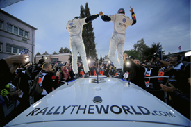 Sebastien Ogier celebrated winning the 2013 World Rally Championship title with a home victory on the Rally of France.