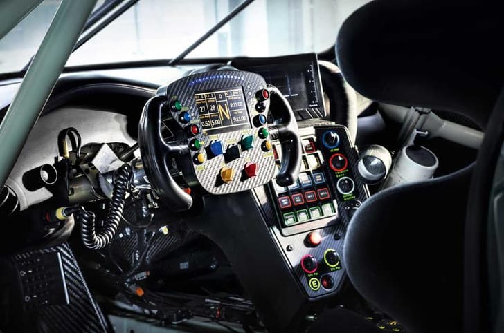 The car uses a six-speed sequential gearbox with steering wheel shift paddles, a multi-disc self-locking differential and a three-disc carbon race clutch. New for the 2017 racer is an automatic emergency braking system that uses radar control like road cars to help avoid major impacts during a race. There’s also a new multi-function steering wheel, LED headlights and tail-lights, and an air conditioning system – as per GT racing regulations.
