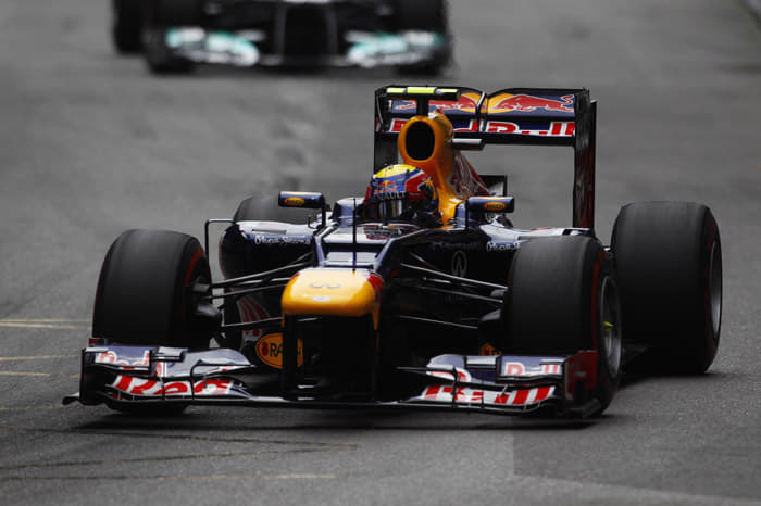 Pole position starter Webber held off Rosberg's Mercedes away from the grid, then remained ahead through the sole pitstop sequence, despite Rosberg going for fresh tyres earlier.